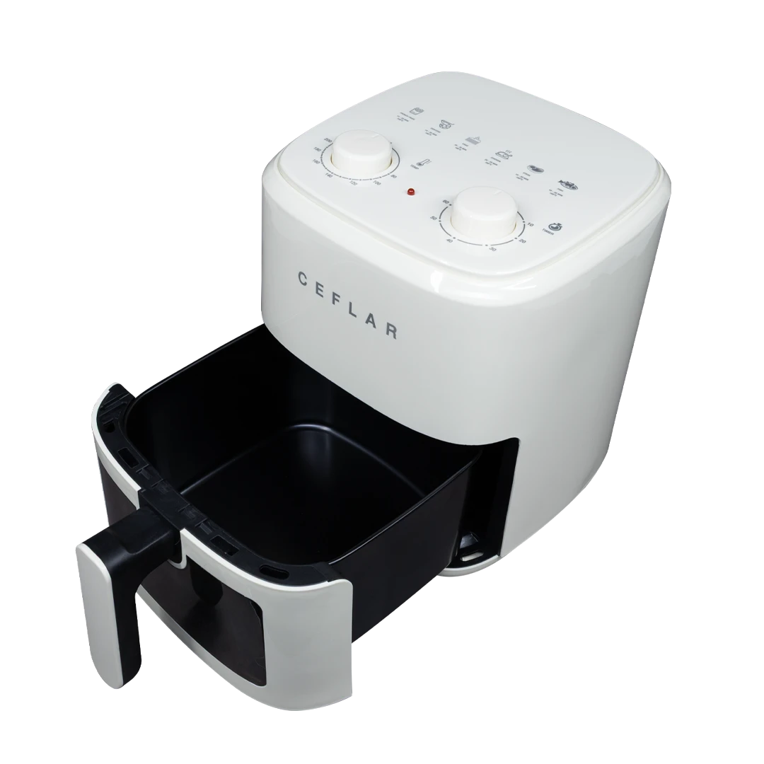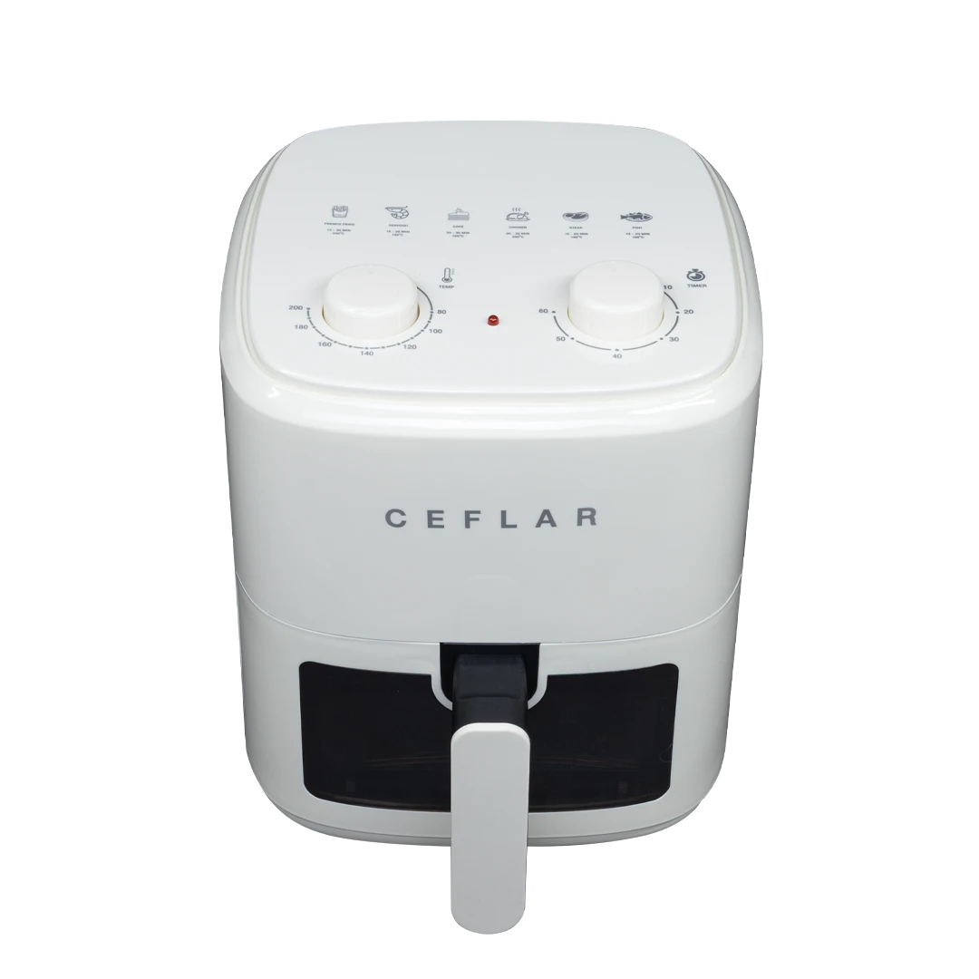 หม้ออบลมร้อน รุ่น FMV-001 อร่อยได้…ไม่ง้อน้ำมัน ด้วยหม้ออบลมร้อน CEFLAR FMV-001 ดีไซน์เรียบหรู ตัวช่วยคู่ครัวที่ทั้งสะดวก ใช้งานง่ายเพียงหมุนปุ่มควบคุม มีไฟแสดงสถานะ และตั้งเวลาได้ถึง 60 นาที แถมยังสุขภาพดี ลดการใช้น้ำมันเพื่อสุขภาพที่ดีกว่า ใช้งานด้วยพลังลมร้อนหมุนเวียน 360 องศา ทำให้อาหารสุกทั่วถึงทุกด้าน และตะกร้าเคลือบสารกันติด ทำความสะอาดง่าย แถมกระดาษรองอบ ฟรี 100 แผ่น